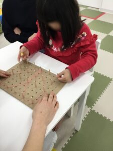 生活プログラム ※ジオボードの他にもひも通し、シールはがしなどを行いました(●ˇ∀ˇ●)